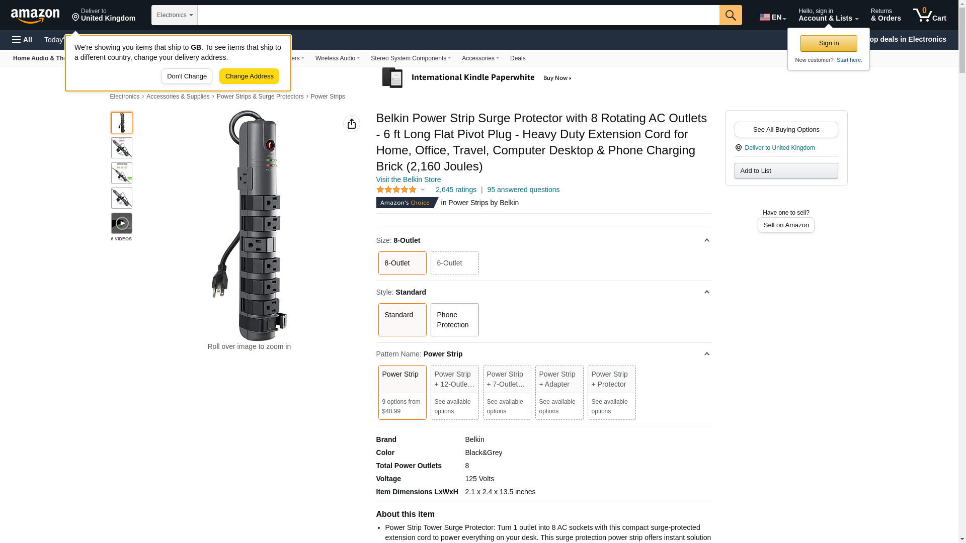 Belkin 8-Outlet Surge Protector, Power Strip with 6 Rotating AC Outlets & 6ft Long Plug, Heavy-Duty Extension Cord for Home, Office, Travel, Computer Desktop, & Phone Charger - 2,160 Joules
