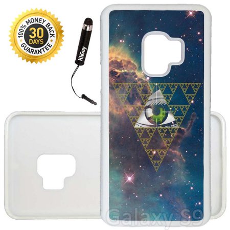 Custom Galaxy S9 Case (Illuminati Triangles Eye Nebula) Edge-to-Edge Rubber White Cover Ultra Slim | Lightweight | Includes Stylus Pen by Innosub