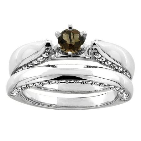 Stunning, natural Gemstone Center|14K Solid Gold|Authentic Diamond Accents|Made in the USA|Exclusive design of PIERA for Gabriella Gold|Gold smoky topaz rings|Silver smoky topaz rings|Diamond gemstone engagement ring sets|Color gemstone 2-pc ring set| 2-piece bridal ring sets, 2pc bridal ring sets