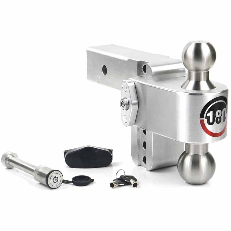 - 4" ADJUSTABLE BALL MOUNT: 4” drop hitch & 5" rise hitch, adjusts in 1" increments so you get the perfect fit for any trailer height - Secured using Anti-Theft Locking Design to protect your drop hitch