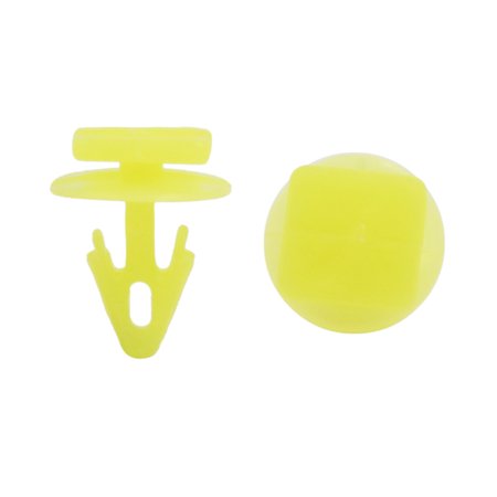 <li>Interchange Part Number: Under Engine Splash Guard Rivet Fastener Clips;Manufacturer Part Number: Plastic Push-Type Bumper Retainer Clip;Other Part Number: Screw Fender Body Door Trim Panel Hood</li> <li>Applications1: Defender Door Card Interior Weatherstrip Moulding;Applications2: NYLON CHRISTMAS TREE Carpet Floor Mat Clips</li> <li>Package Content: 100(+/-2%) x Rivets;Fit Hole Size: 9mm/0.35";Head Diameter(max.): 15mm/0.6"</li> <li>Stem Length: 15mm/0.6";Total Length: 20mm/0.8";Shell Color: Yellow</li>