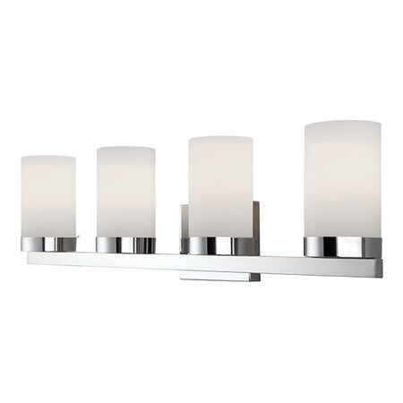 - The Milo, Chrome/ Flat Opal Glass, Features A Combination Of Straight-Line Contemporary Design With In-Line Cylindrical Shades That Soften The Look