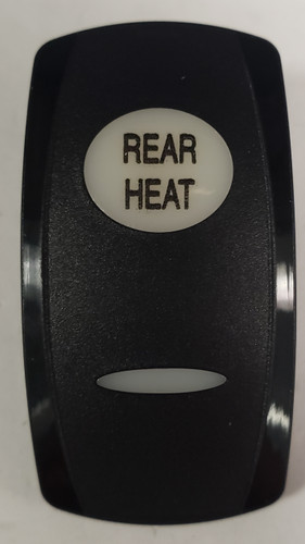Carling V Series Custom Rocker Switch Actuator, Hard Black, Rear Heat (text) Imprinted on White Lens