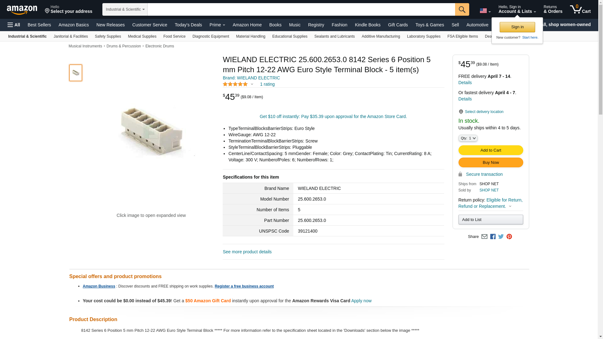| Feature | WIELAND ELECTRIC 25.600.2653.0 TERMINAL BLOCK PLUGGABLE, 6POS, 22-12AWG |
