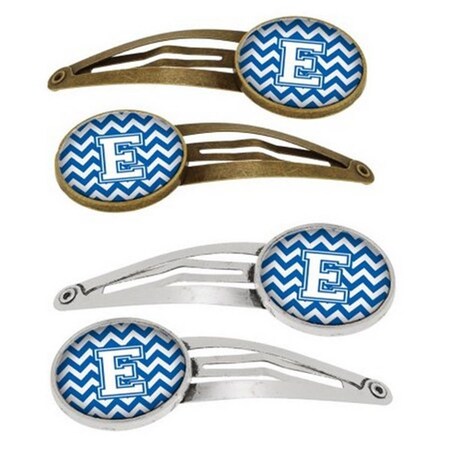 Letter E Chevron Blue and White Barrettes Hair Clips