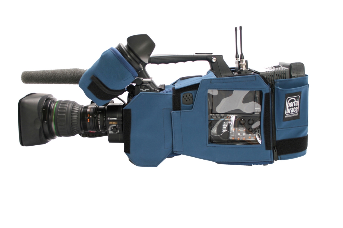 The blue <strong>CBA-PXWX500</strong> Camera Body Armor is a jacket designed to fit the Sony PXW-X500 Camcorder. It is made of a soft-feel, water and abrasion-resistant fabric that protects your camera from bumps, hits, and scratches, also reducing the risk of damage due to precipitation, dust, and other harsh conditions. The flaps and vinyl windows keep dirt and moisture out, but allow quick visual checks on important meters, indicator lights, and switches. The back end of the jacket is expandable to accommodate various sizes of batteries and wireless microphone combinations. </p><p>The Camera Body Armor includes a reversible rain top cover; one side of it is white to reflect light and heat in hot, dry, sunny situations, while the other one is black to absorb the sun's warmth under cold conditions. The Camera Body Armor is fastened onto the camera using touch fasteners and web cinches.</p>
