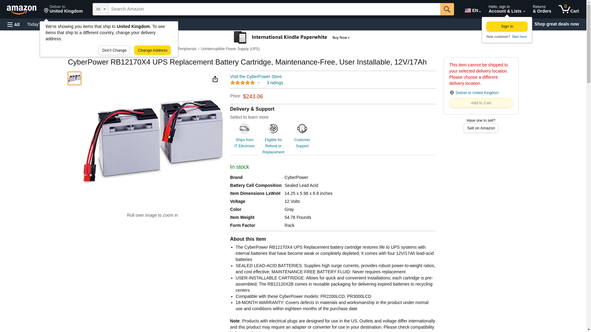 - The CyberPower RB12170X4 UPS Replacement battery cartridge restores life to UPS systems with internal batteries that have become weak or completely depleted; It comes with four 12V/17Ah lead-acid batteries