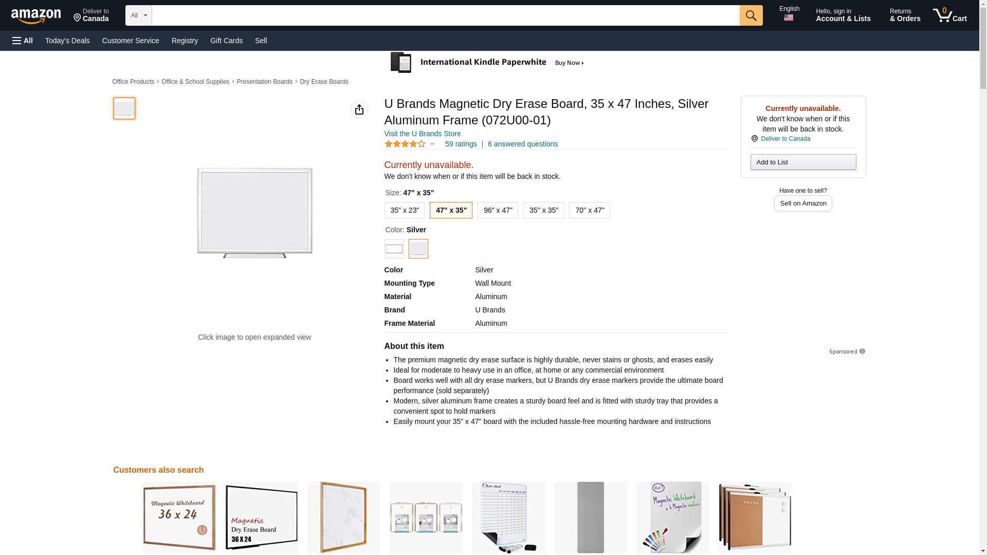 U Brands Magnetic Dry-Erase Board, 35'' x 47'', Silver Aluminum Frame (072U00-01)