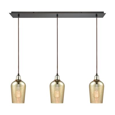 Hammered Glass 3 Light Linear Pan Fixture in Oil Rubbed Bronze with Hammered Amber Plated Glass