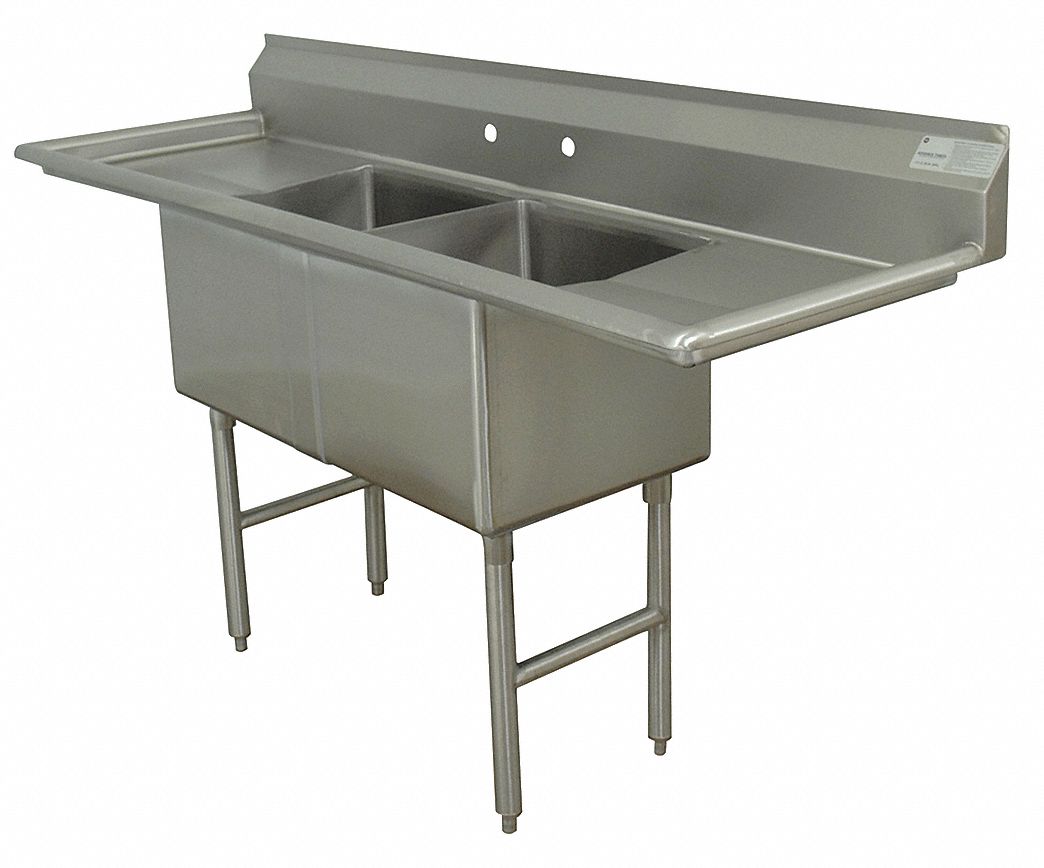 'Scullery Sink, Without Faucet, Body Material Stainless Steel, Gauge 16, Mounting Type Floor, Overall Length 72 In., Overall Width 24 In., Overall Height 43 In., Number of Stations 2, Bowl Size 18 In. x 18 In., Bowl Depth 14 In., Back Splash S, Back Splash Height 8-1/2 In., Side Splash No, Faucet Operation Not Applicable, Drain Opening 3-1/2 In., Faucet Mounting Centers 8 In., Faucet Hole Dia. 1-1/8 In., Number of Holes 2'