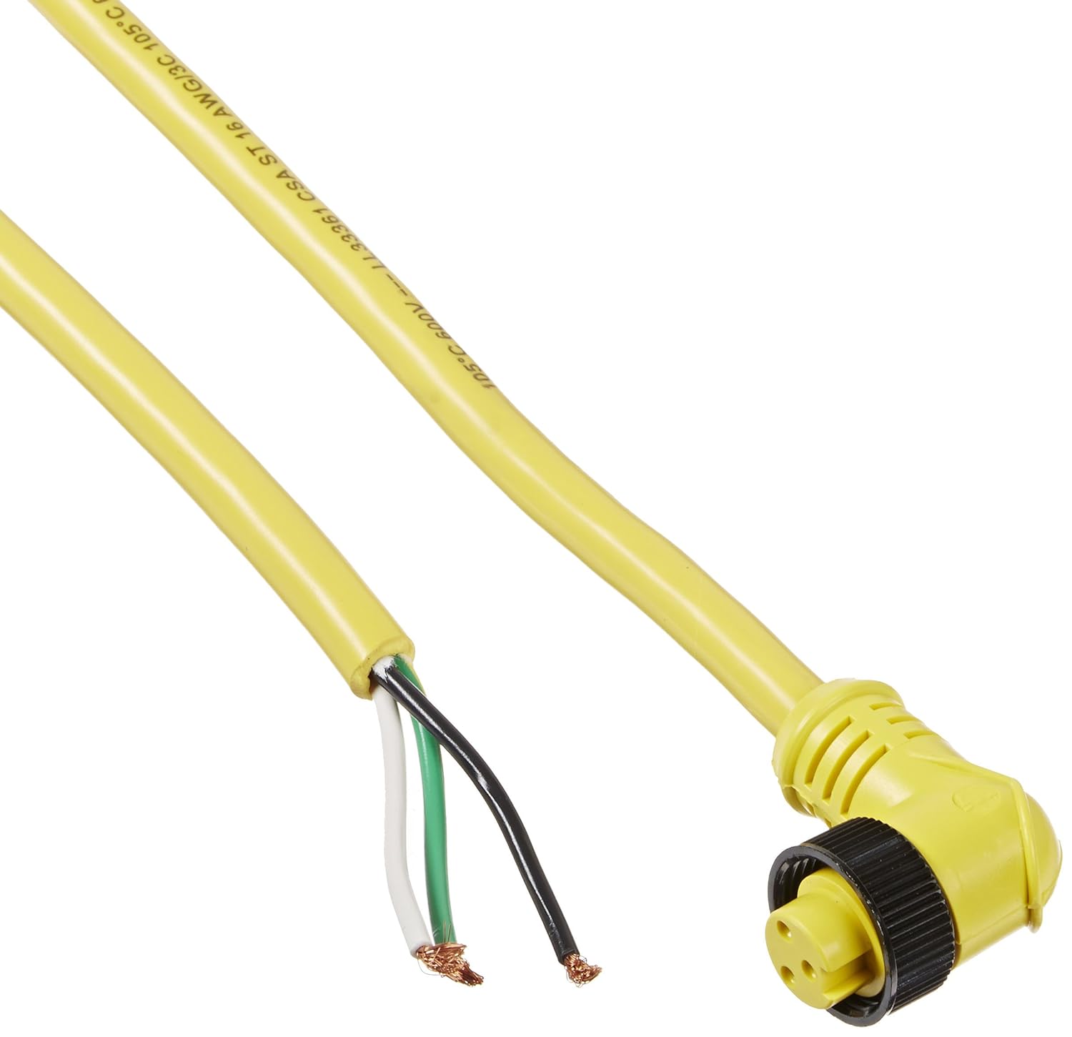 EU RoHS: Compliant with Exemption ECCN (US): EAR99 Part Status: Active Cable Type: STOOW Number of Contacts: 3 Gender: F Connector Type A: Circular Connector Type B: Not Included Cable Length (m): 3.66 Wire Size (AWG): 16 Color: Yellow Maximum Voltage Rating: 600V Minimum Operating Temperature (°C): -20 Maximum Operating Temperature (°C): 105 Packaging: Bag Tradename: Mini-Change Connector Orientation: Right Angle Jacket Material: Polyvinyl Chloride Maximum Current Rating (A): 13/Contact Contact Material: Copper Alloy Contact Plating: Gold