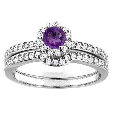10K White Gold Natural Amethyst 2-pc Bridal Ring Set Diamond Accent Round 4mm, sizes 5 - 10