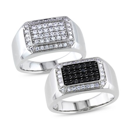 <ul> <li>Gemstone colors: Black, white</li> <li>Gemstone shapes: Round</li> <li>24 pave-set round black spinel or white sapphire stones each measure 1.5 mm</li> </ul>