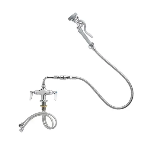 TS Brass B-0200-60H-VB Mixing Faucet Kit, single, deck mounted, includes: vacuum beaker (B-0970-01), swivel elbow - B-0200-60H-VB - T&S Brass T&S Brass B-0200-60H-VB Single Hole Deck Mount Pre Rinse Faucet W/ 4" Centers, B-0107-035 Spray ValvTS Brass B-0200-60H-VB Mixing Faucet Kit, single, deck mounted, includes: vacuum beaker (B-0970-01), swivel elbow - B-0200-60H-VB - T&S BrassSingleDeck MountedIncludes: Vacuum Beaker (B-0970-01)Swivel Elbow (034A)Angle Spray Valve With 60" Flexible Stainless Steel Hose (B-0107-035)Wall Hook (B-0104-D)Lever Handles With Color Coded Indexes(1) 150A Tailpiece And Nut For 1/4" Npt ConnectionHose Length: 60"Nozzle Type: NoneValve Type: MixingMount: DeckNozzle Mount: Swing/SwivelCenters: Single Pre-rinse Faucets B020060HVB, 510B20060HVB