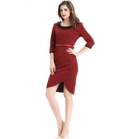 Style : Houndstooth | Occasion : Party, Wedding, Special Occasion| Sleeve Style : Sleeves | Neck : Round | Color : Red| Dress Length : Above Knee| Pattern : Solid | Material : 95% Polyester, 5% Spandex | With Belt |