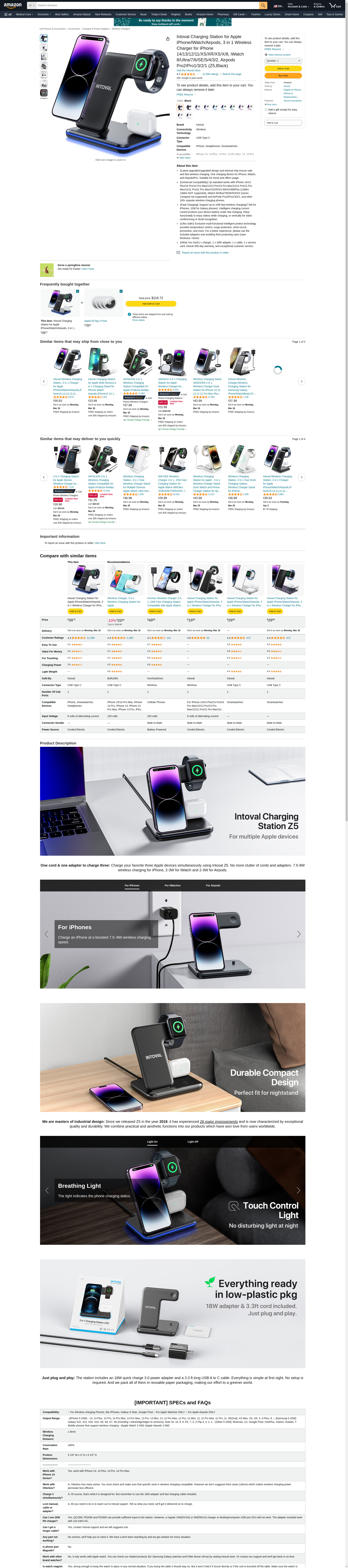 Intoval Charging Station for Apple iPhone/iWatch/Airpods, 3 in 1 Wireless Charger for iPhone 14/13/12/11/XS/XR/XS/X/8, iWatch 8/Ultra/7/6/SE/5/4/3/2, Airpods Pro2/Pro1/3/2/1 (Z5,Black)