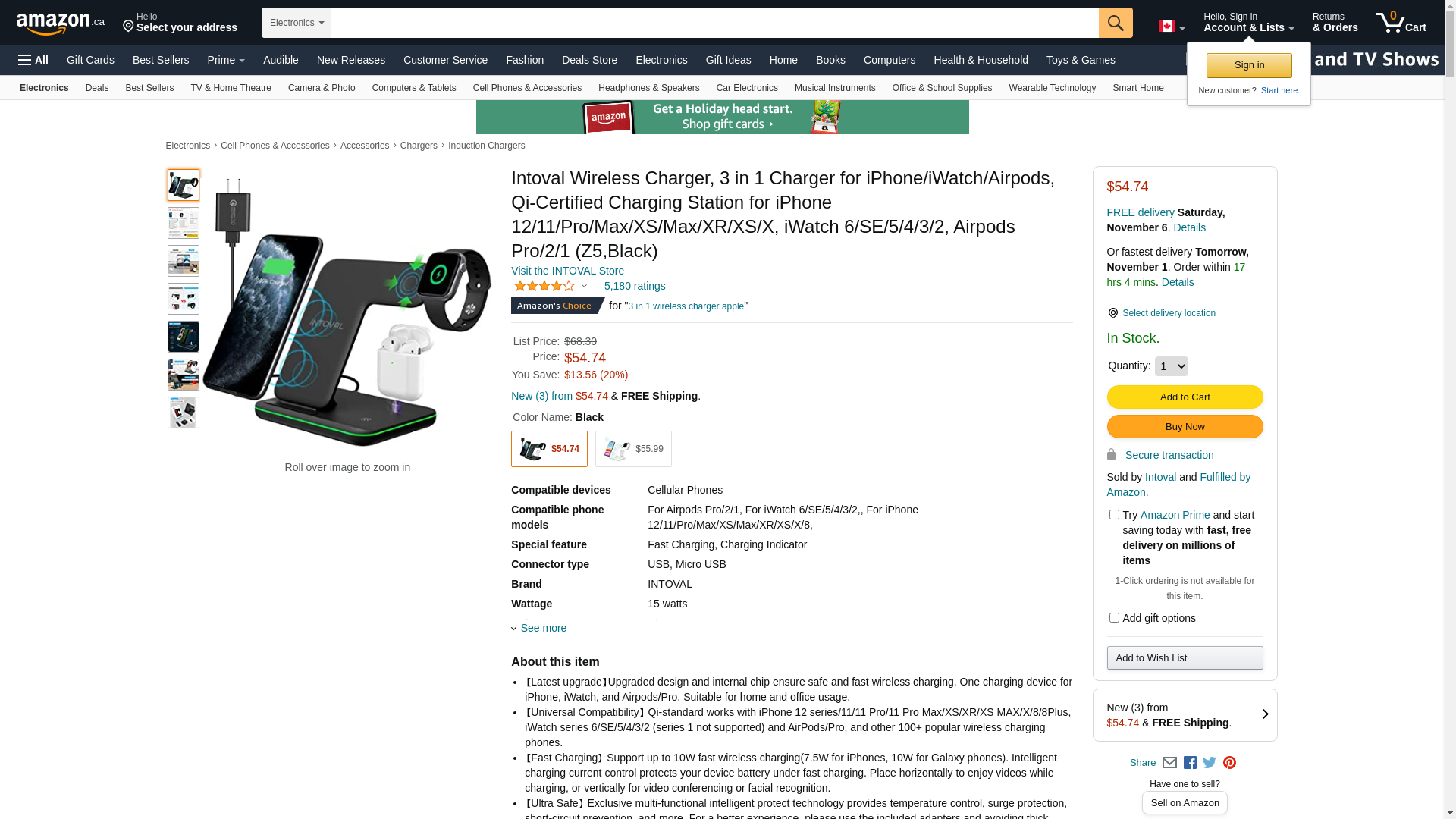 Intoval Wireless Charger, True 3 in 1 for Apple iPhone/iWatch/Airpods, Qi-Certified Wireless Charging Station for iWatch 6/SE/5/4/3/2, iPhone 11/Pro/Max/XS/Max/XR/XS/X, Airpods Pro/2/1 (with Adapter): Maxedbuy.com
