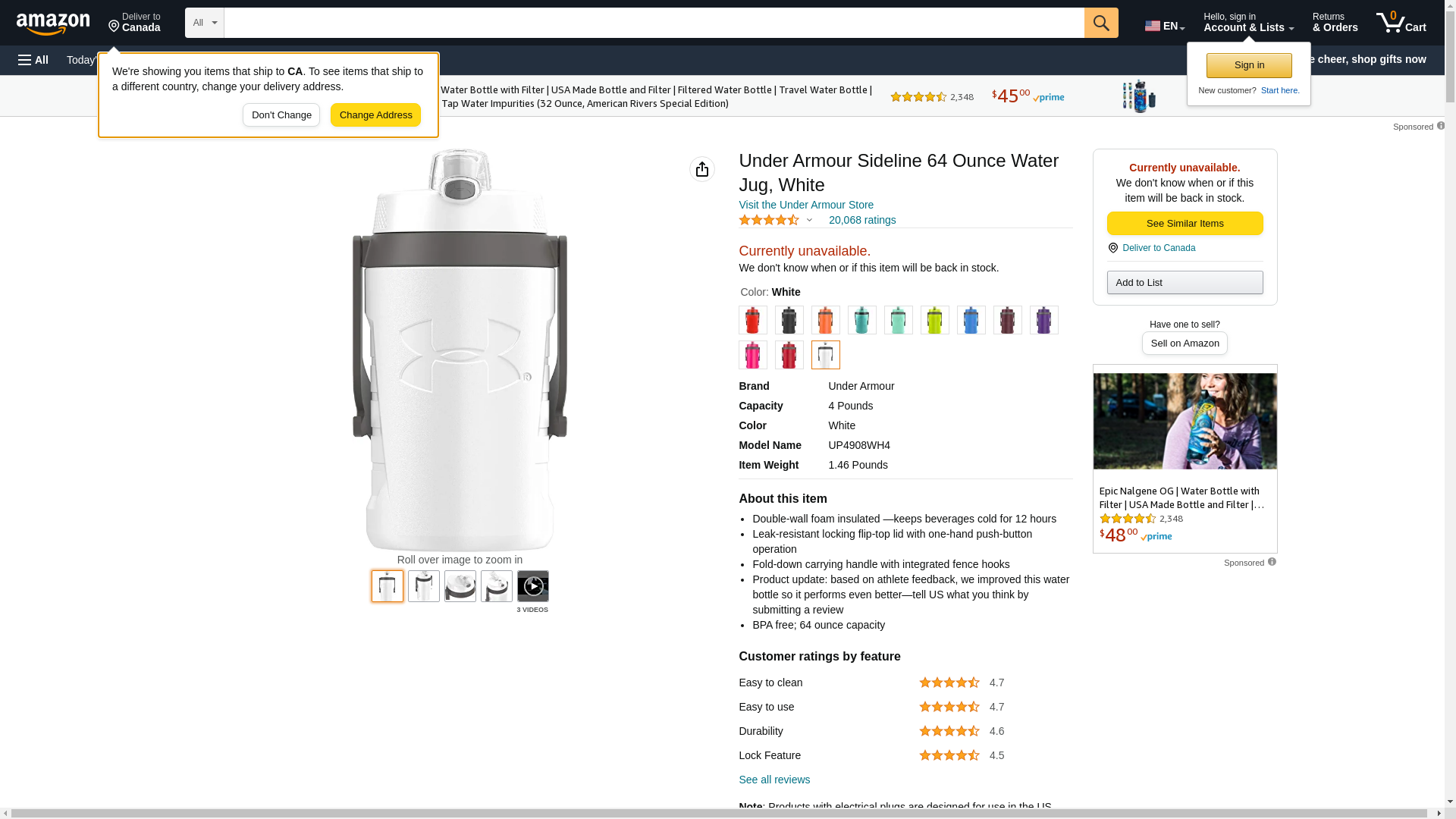 Under Armour Sideline 64 Ounce Water Jug, White: Maxedbuy.com