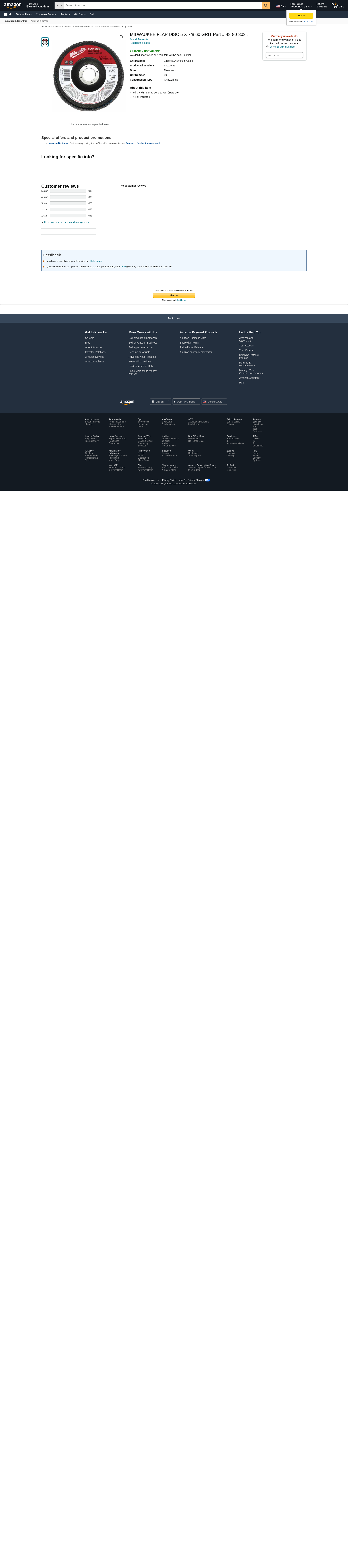 MILWAUKEE FLAP DISC 5 X 7/8 60 GRIT Part # 48-80-8021