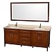 Wyndham Collection Hatton 80 inch Double Bathroom Vanity in Light Chestnut, White Carrera Marble Countertop, Undermount Square Sinks, and 70 inch Mirror