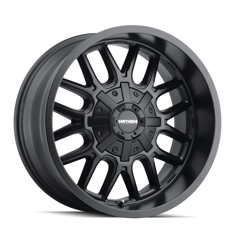 MAYHEM WHEELS DEVELOPMENT WAS IMMINENT AS WE ACCEPTED THE MISSION TO CREATE A BRAND THAT PROVIDES UNIQUE STYLING, PRECISION QUALITY AND SUBSTANTIAL ALLURE. OUR TACTICAL APPROACH TO CONSTRUCTING THE INDUSTRY'S MOST SUPERIOR PRODUCTS RESULTED IN A RADICALLY DURABLE WHEEL THAT TOUTS THE HIGHEST LOAD RATINGS FOR REAL WORLD APPLICATIONS. TARGETED FOR TRUCKS, JEEP AND SUV FITMENTS, WE DEPLOY A WIDE VARIETY OF SIZES AND FITMENTS WHICH SUPPLY A CUSTOM LOOK THAT'S UNMISTAKABLE. LIBERATE YOUR VEHICLE WITH A SET OF MAYHEM WHEELS.