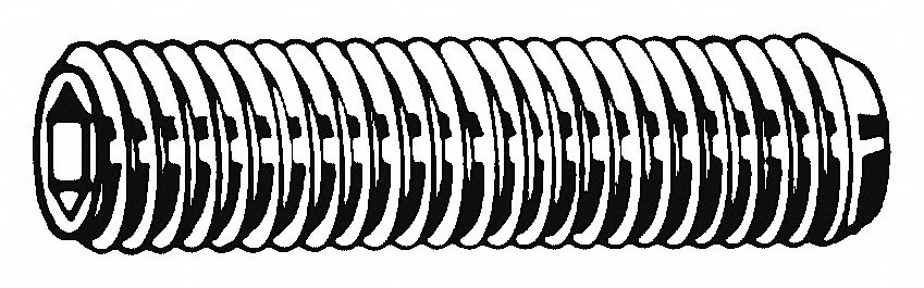 | Feature | Price For: Each Drive Type: Hex Socket System of Measurement: Inch Drive Size: 1/4" Thread Size: 1/2-13 Item: Socket Set Screw Class: 3A Material: Alloy Steel Finish: Plain Decimal Equivalent: 0.500" Point Material: Alloy Steel Point Dia.: 0.270 to 0.291" Rockwell Hardness: HRC 45-53 Meets: ANSI/ASME B18.3 Point Type: Cup Overall Length: 1-1/2" |