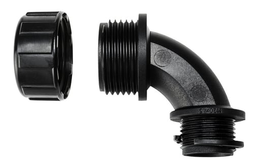 - <b>Price For:</b> Each <b>Conduit Configuration</b>: 45 Degree <b>Trade Size</b>: 1" <b>Conduit Material</b>: Nylon 6.6 (Polyamide 6.6) <b>Conduit Colour</b>: Black <b>External Length</b>: 80mm <b>IP / NEMA Rating</b>: IP65 <b>Product Range</b>: HelaGuard Series