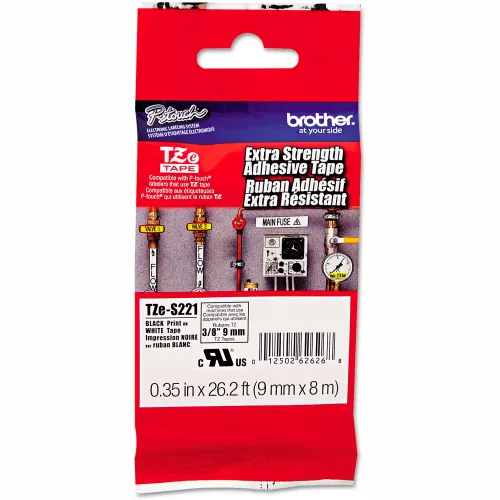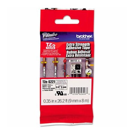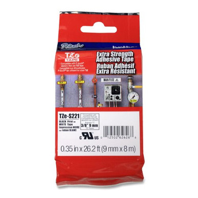 Brother TZeS221 0.35 in x 26.2 ft (9mm x 8m) Black on White Extra-Strength-by-Brother