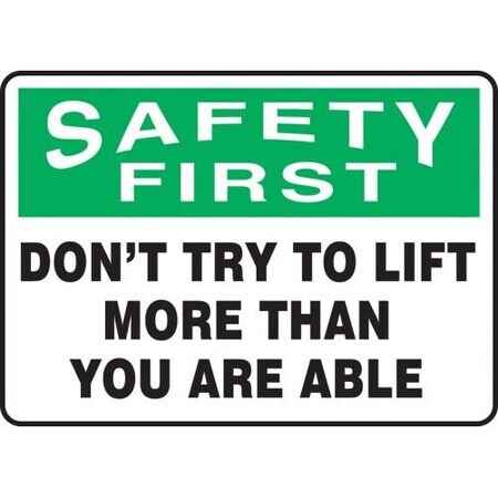 Accuform MGNF901XL Lifting SAFETY FIRST DON'T TRY TO LIFT MORE THAN YOU ARE ABLE 10" x 14" Aluma-Lite