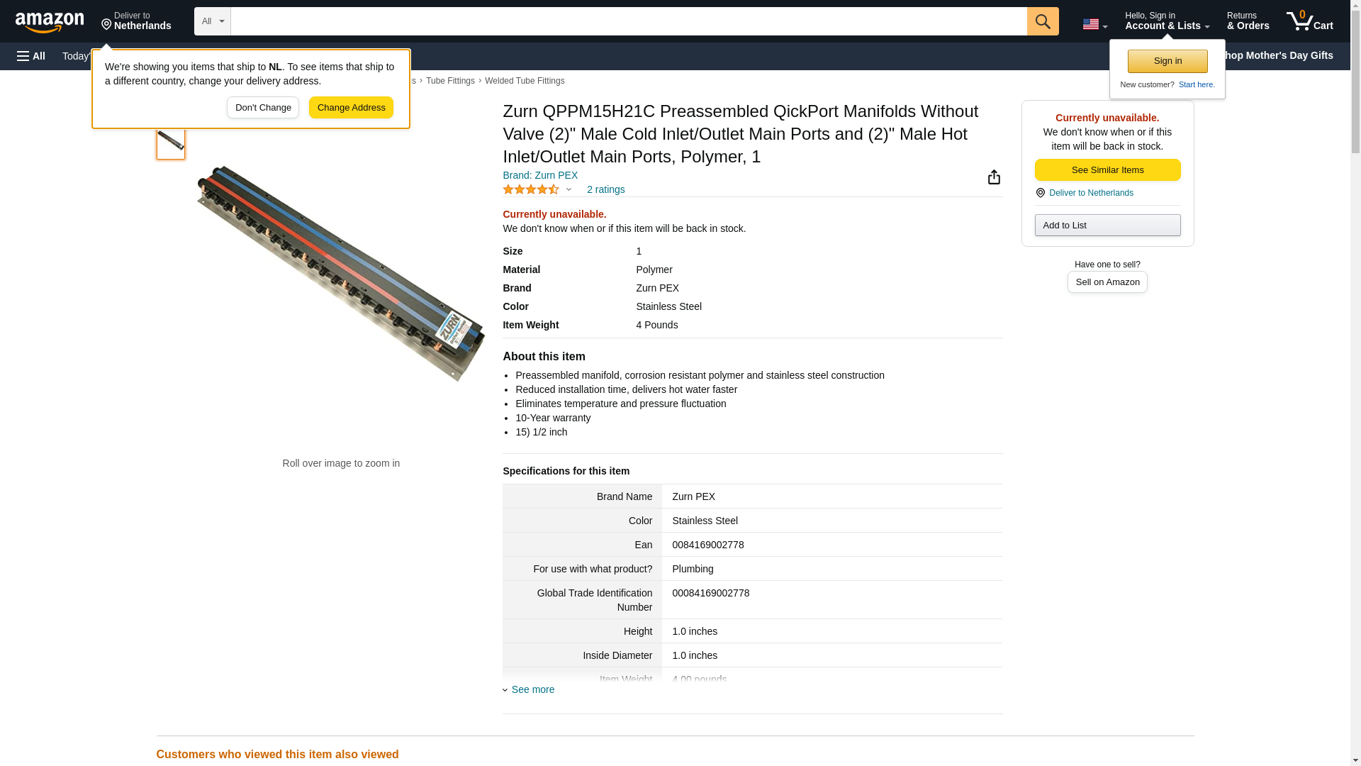 Zurn QPPM15H21C Preassembled QickPort Manifolds Without Valve (2)" Male Cold Inlet/Outlet Main Ports and (2)" Male Hot Inlet/Outlet Main Ports, Polymer, 1