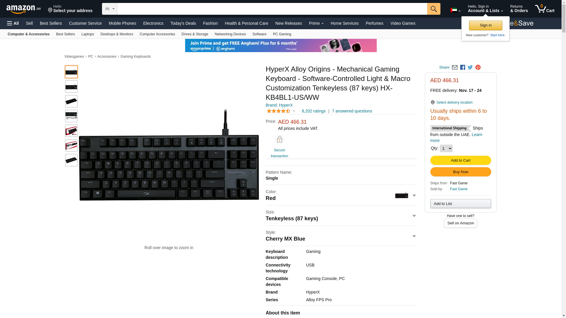 - Cherry MX Red mechanical keys, Convenient USB charge port