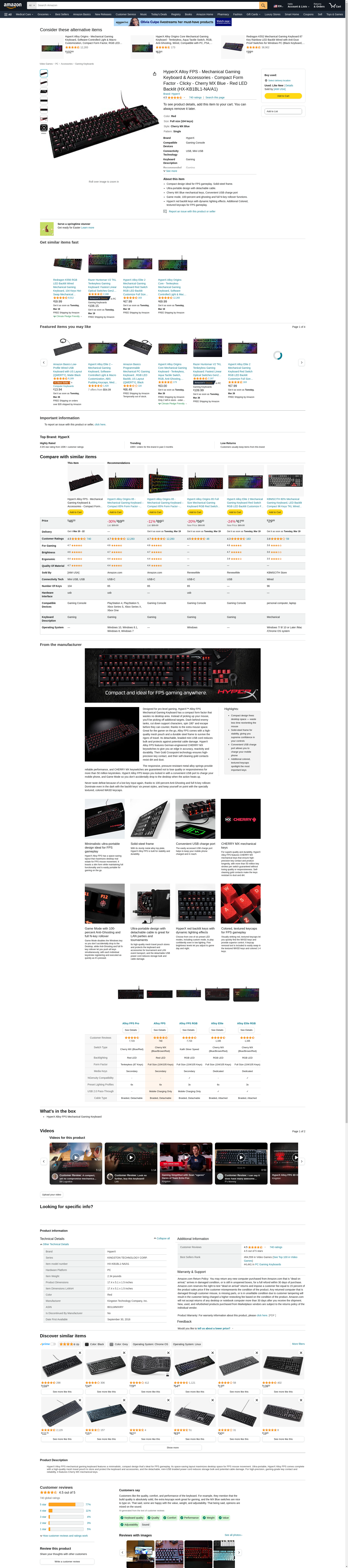 HyperX Alloy FPS - Mechanical Gaming Keyboard & Accessories - Compact Form Factor - Linear & Quiet - Cherry MX Red - Red LED Backlit (HX-KB1RD1-NA/A1)