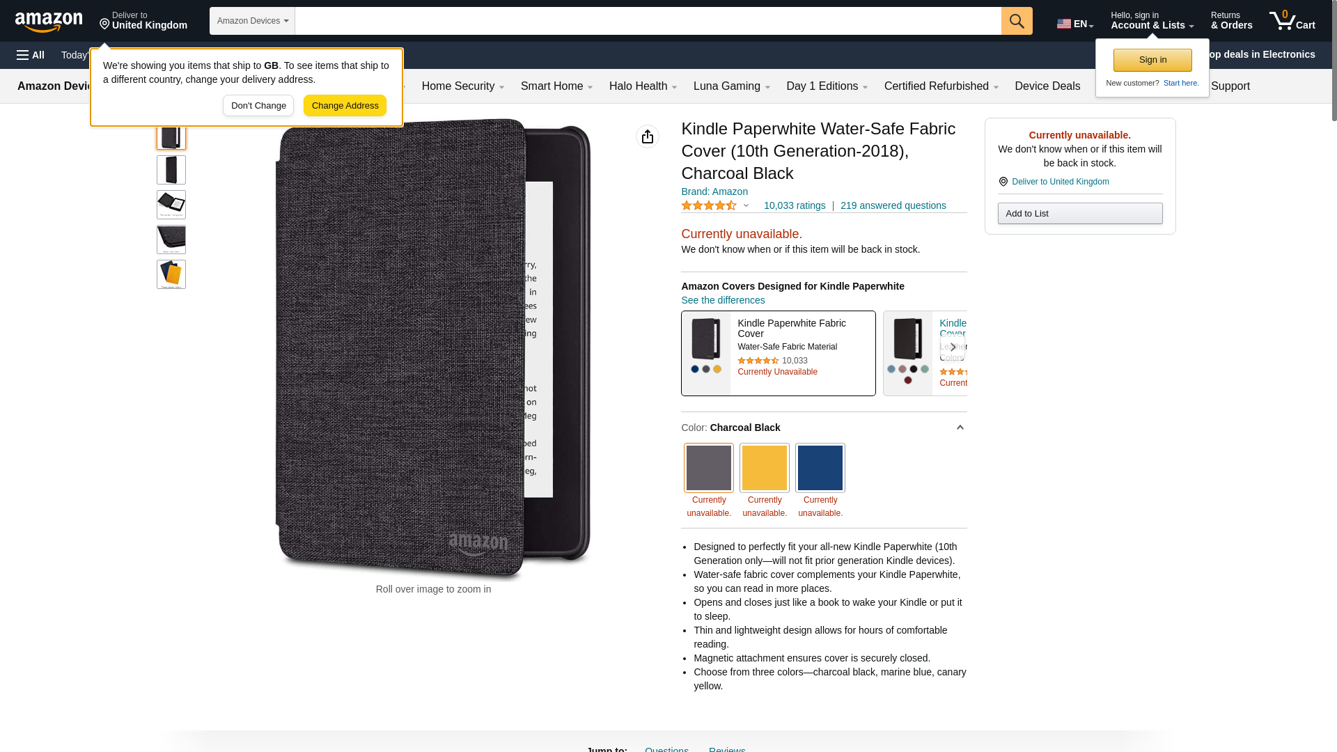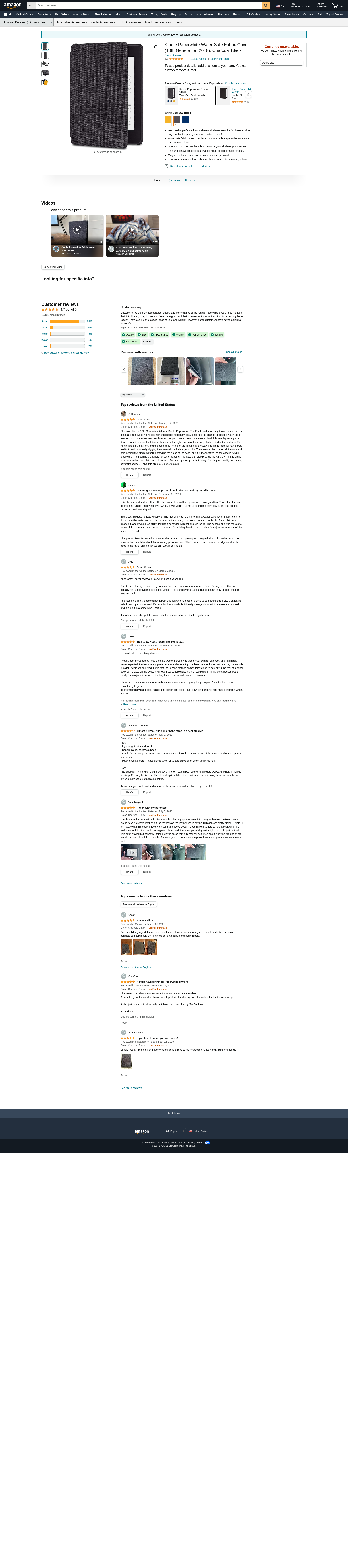 - Water-safe fabric cover complements your Kindle Paperwhite, so you can read in more places.