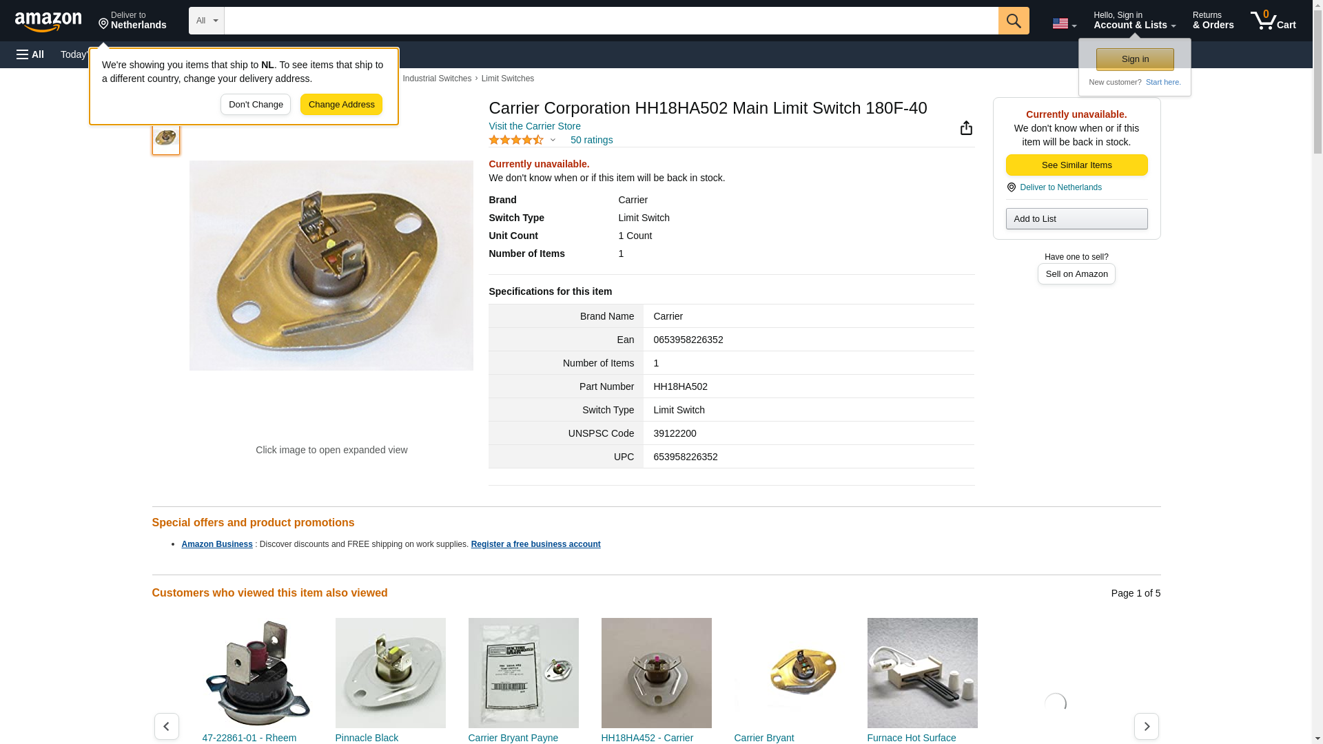 Bryant/Carrier HH18HA502 Main Limit Switch 180F-40