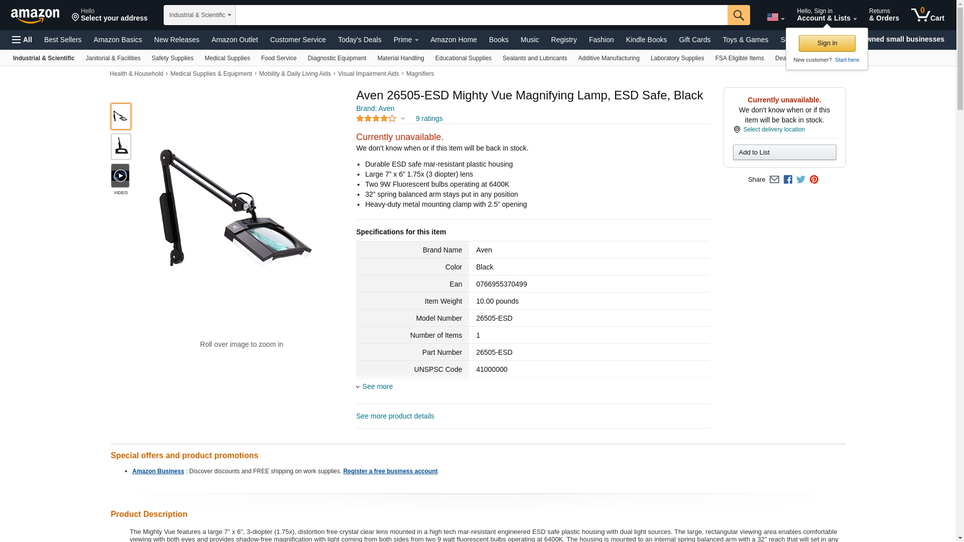 | Feature | AVEN 26505-ESD MAGNIFYING LAMP, MIGHTY MAG, 1.75X |