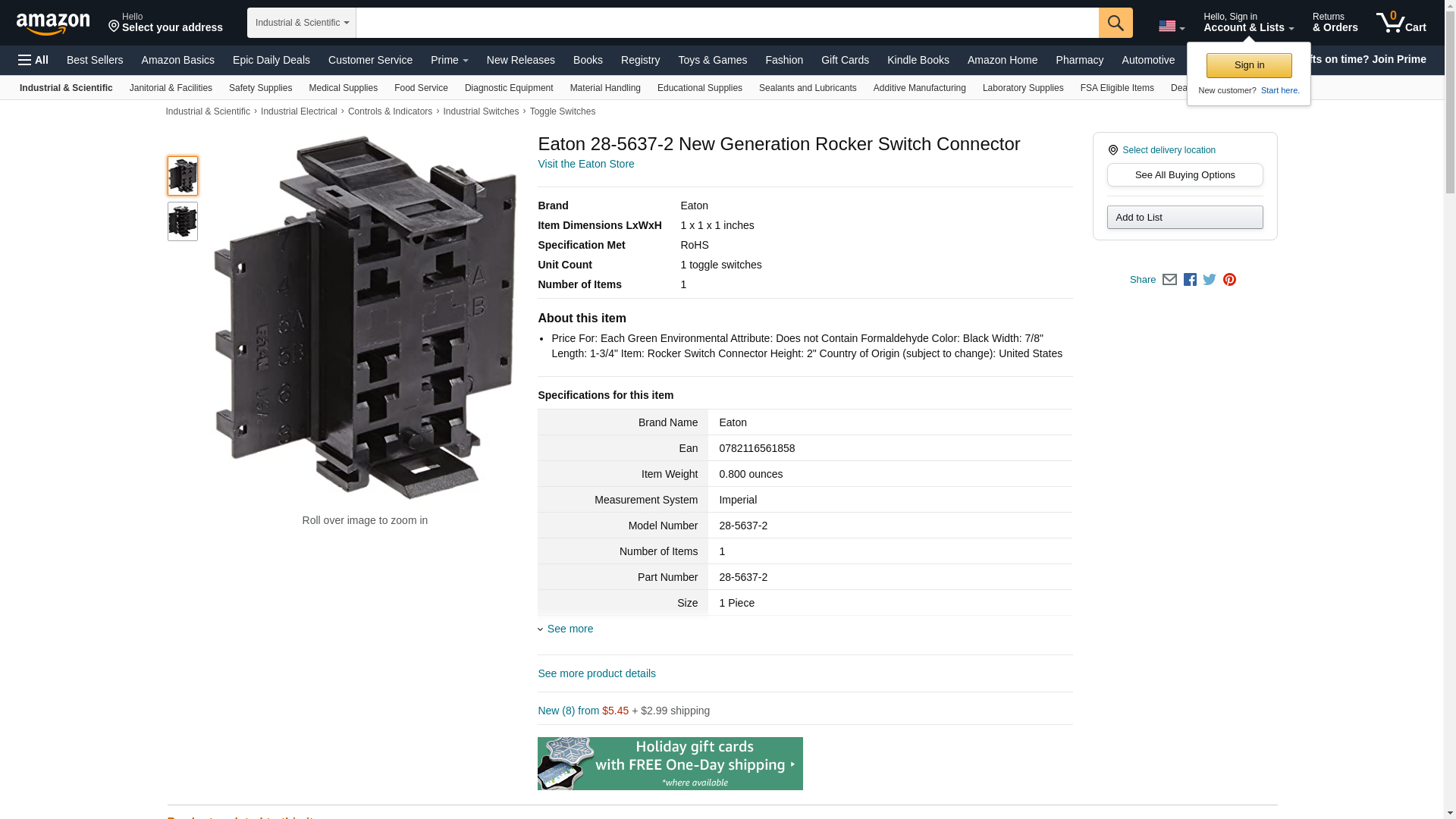 | 28-5637-2 | 1 | 170 | 1 | 1 @ $1.35, 10 @ $1.30, 25 @ $1.25, 50 @ $1.20, 100 @ $1.15 | |