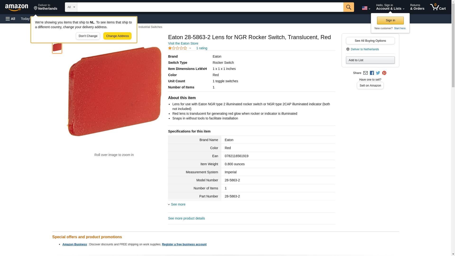- Price For: Each For Use With: Eaton New Generation Rocker Switches Lens Color: Red Lens Width: 14.73mm Lens Height: 28.65mm Color: Red Features: Rectangular Configuration RoHS Compliant: Yes