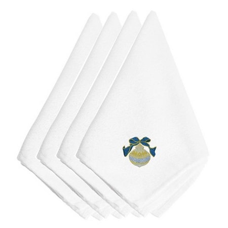 Caroline's Treasures EMBT2962NPKE Christmas Gold and Blue Ornament Embroidered Napkins Set of 4 Napkin Cloth Washable, Soft, Durable, Table Dinner Napkins Cloth for Hotel, Lunch, Restaurant, Weddings,