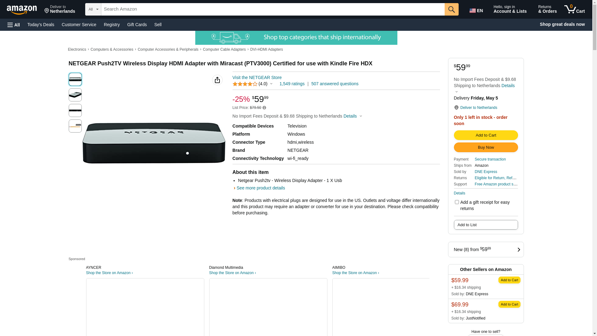 NETGEAR Push2TV Wireless Display HDMI Adapter with Miracast (PTV3000) Certified for use with Kindle Fire HDX