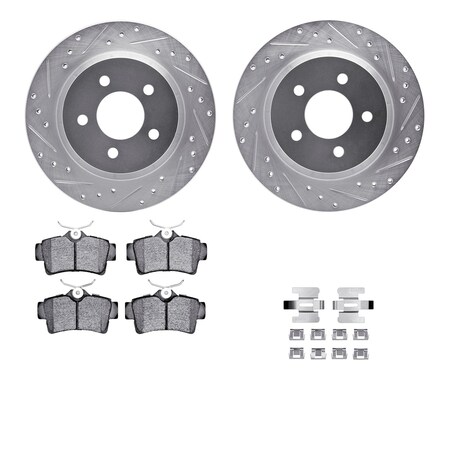 Rear - Dynamic Friction Company Brake Rotors - Drill/Slot - Silver with Ceramic Brake Pads and Hardware Kit 7312-54091
