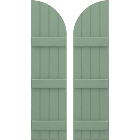 Ekena Millwork ARW401BQ414X46TGH Americraft Four 3 Exterior Real Wood Joined Board-n-Batten Shutters w/Arch Top (Per Pair), 14"W x 46"H, Track Green