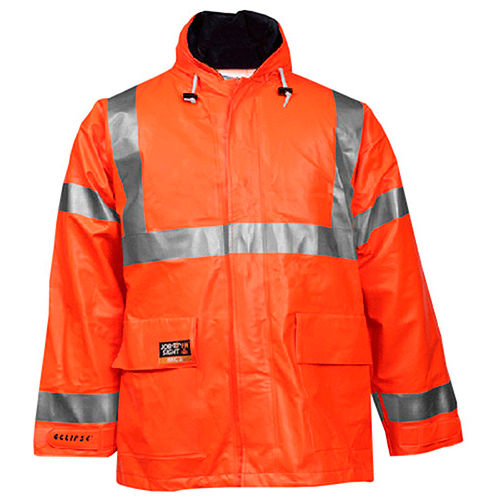 48" coat. ANSI/ISEA 107 Class 3 compliant for flame resistance and high visibility. Conforms to ASTM F1891 for Arc Thermal performance and NFPA 70E - HRC 2. Conforms to ASTM F2733 for Flash Fire performance. Fluorescent orange-red background for excellent daytime visibility. 2" silver reflective tape reflects light for 360° nighttime conspicuity. Overhead shoulder design for complete freedom of movement. Therm-O-Rad sealed seams for 100% liquid protection. Zipper/storm fly front with snap closure and hidden hardware. Flame resistant corduroy collar with roll-a-way hood. Oversized 3 piece hood with adjustable hook & loop take-up strap. Non-conductive, non-corrosive hardware. Full-vented cape back. D-ring access for fall protection harness. Hook & loop take-up straps on wrists. Adjustable elastic drawcord. Flame resistant. Self extinguishing with flameout and afterglow less than or equal to 2 seconds after removal of ignition source and char length less than 6 inches. Test method ASTM D6413. , Lot of 1