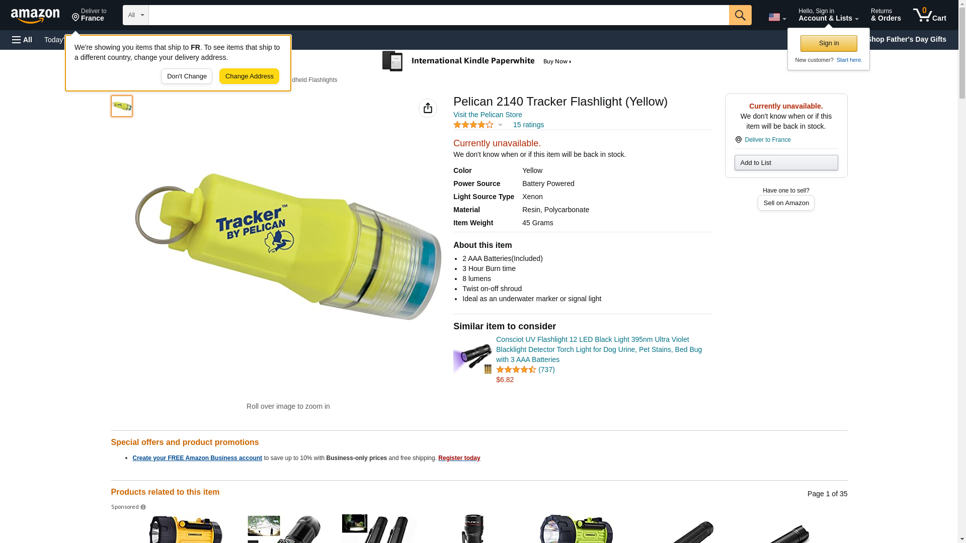 Pelican Products Tracker 2140 Yellow Flashlight W/Keyring