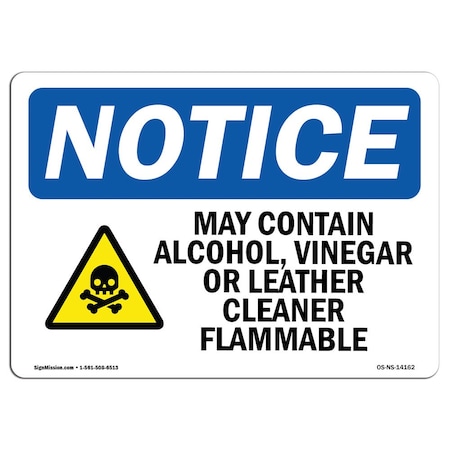 OSHA Notice Sign, May Contain Alcohol Vinegar With Symbol, 24in X 18in Decal