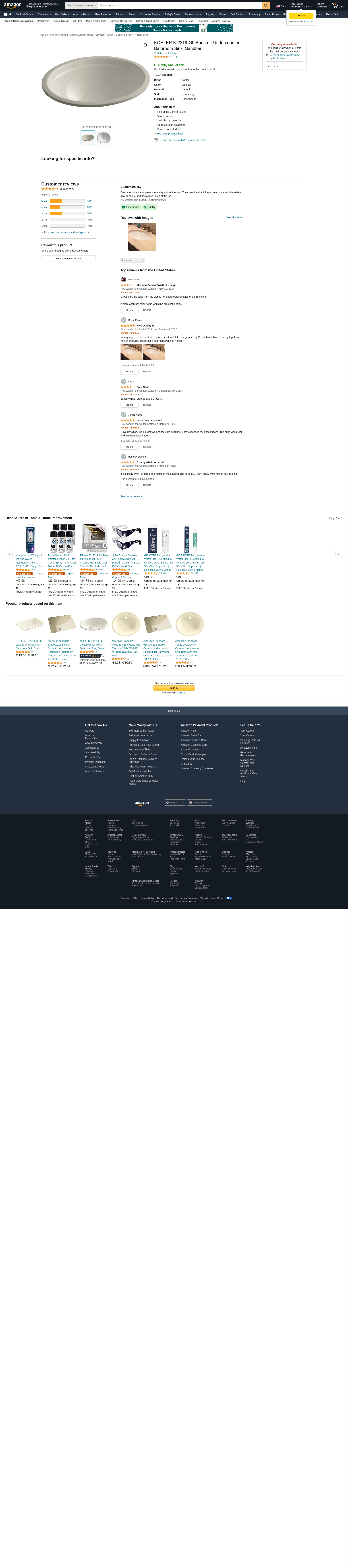 KOHLER K-2319-G9 Bancroft Undercounter Bathroom Sink, Sandbar