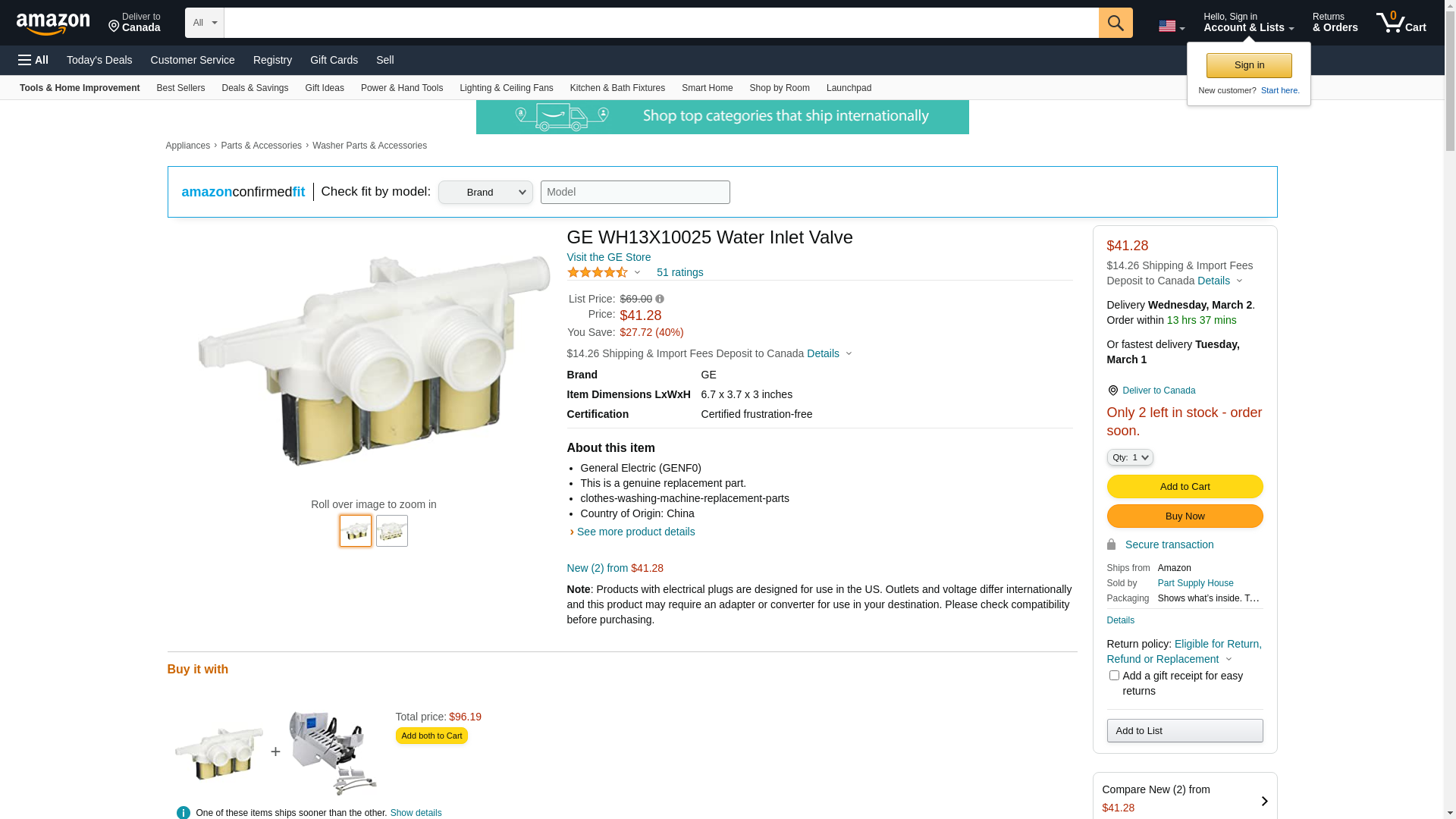 ![]() midwestapplianceparts.com | WH13X10025-GEH-P | 1 | -2 | 1 | 1 @ $82.76 |