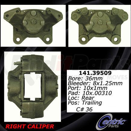 Centric Remanufactured Rear Passenger's Side Disc Brake Caliper 141.39509