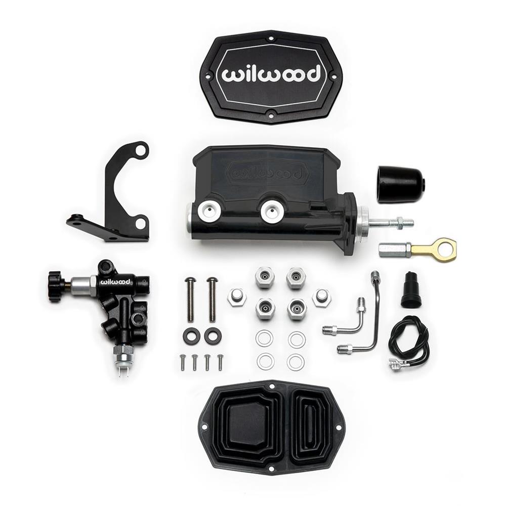 Wilwood has packaged the new Compact Tandem Chamber Master Cylinder (w/ Fits Mustang pushrod) with the Combination Proportioning Valve, R/H mounting bracket, fluid tubes and mounting hardware in a kit. Tandem Master Cylinder represents the latest in refinements in brake pressure actuation and fluid control in a compact package with only 6.55" from mounting flange to end. The slotted flange mounting and included pushrod clevis end makes it a simple bolt on for 1964 to 1973Fits Ford and Fits Mustang and is compatible with manual system applications. Master cylinders with pushrods are generally intended for manual brake use and available in four bores sizes, 7/8", 15/16", 1.00" and 1-1/8" and two finishes, ball burnished or black E-coat. The combination proportioning valve substantially simplifies wiring and brake proportioning adjustments on vehicles with custom brake systems. The combination block maintains full isolation between front and rear fluid circuits and is specifically designed to accompany the Tandem Chamber Master Cylinder. The combo valve and right-hand side bracket are black E-coated for a performance look and long lasting durability. Stainless steel fluid tubes are precision bent with preinstalled plated steel tube nuts for a simple bolt-on installation between the Combination Proportioning Valve and the Wilwood Tandem Master Cylinder. Stainless steel button head fasteners thread into the bracket for a simple installation and years of durable, rust-free performance. Simply connect the fluid lines, bleed the system, and you're finished.