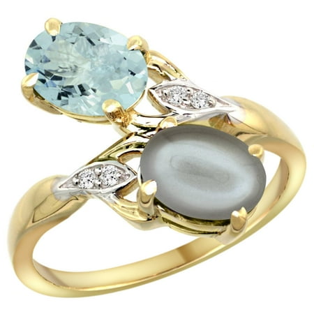 14k Yellow Gold Diamond Natural Aquamarine & Gray Moonstone 2-stone Ring Oval 8x6mm, sizes 5 - 10