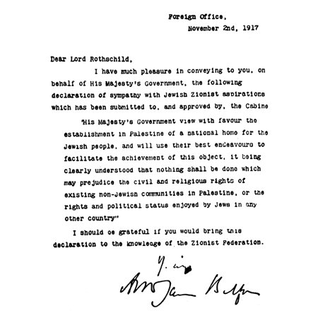 Balfour Declaration 1917 Nthe Letter Written By British Foreign Secretary Arthur James Balfour To Lord Rothschild On November 2 1917 Setting Forth British Support For The Establishment Of A National H